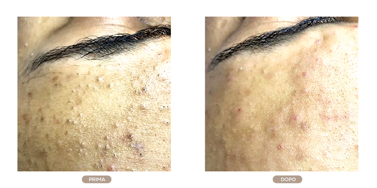 L’obiettivo è una pelle più pulita, uniforme e luminosa, con una significativa riduzione di brufoli, comedoni e macchie post-acneiche. I risultati sono progressivi e duraturi se accompagnati da corrette abitudini di cura quotidiana e da follow-up personalizzati.